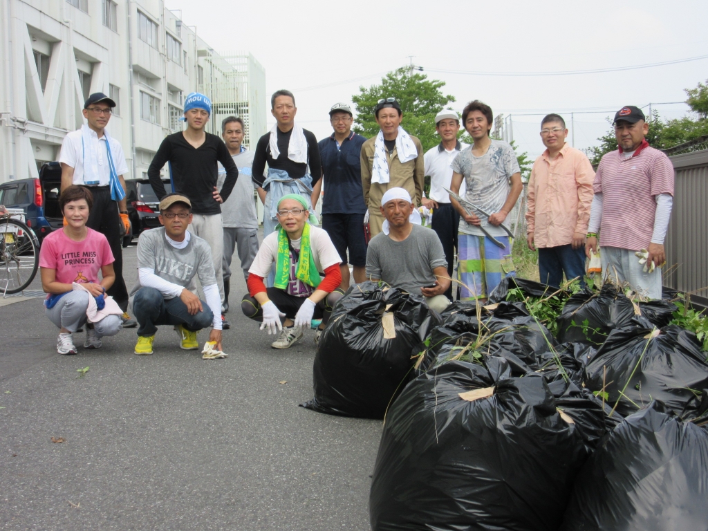約1時間で作業は終了しました。黒ビニール袋が約40個もできあがり、北の水路はかなりきれいになりました。学校北側の道路を通る時に見る学校が、いつもよりすっきりしているなと思ってもらえたら、それはおやじの会のみなさんのおかげなのです♪