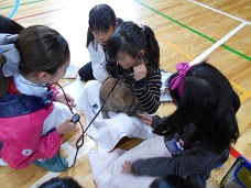獣医さんを講師としてお招きして、初めにウサギのだっこの仕方などを教えていただきました。