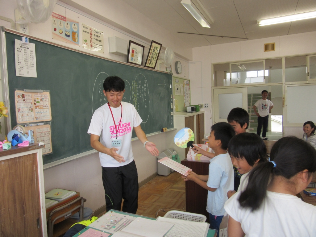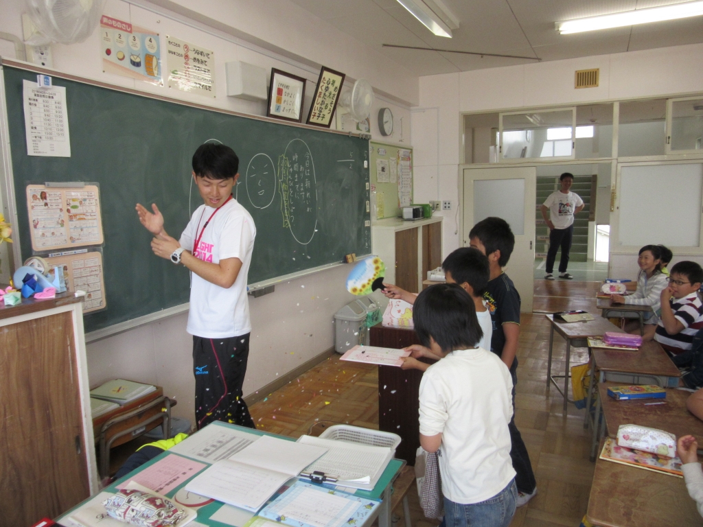 3-4の担任の先生が、4日に結婚されるということで、クラスでちょっとしたプレゼントをしました。朝の会で先生に目をつむってもらい、プレゼントの準備をします。「いいよ。」と先生に声をかけて振り返ってもらったら、すかさず紙吹雪を投げ、(うちわで必死にあおぎ!)メッセージを書いた色紙を手渡しました。「奥さんに伝えておくね。」と先生。結婚前のプチサプライズでした。