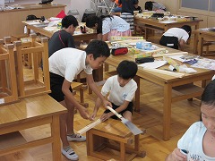 協力して木材を切った子もたくさんいました。1人ではちょっと押さえづらい長さです。