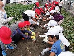 サツマイモを傷つけないよう、気をつけて掘ります。