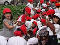 1年生は、1学期に植えたサツマイモを堀りに行きました。ここまで雨が多く、土も軟らかくなっていたことでしょう。どんな芋がとれたのでしょうか?