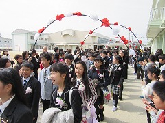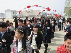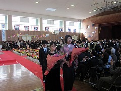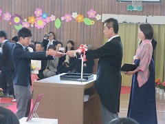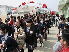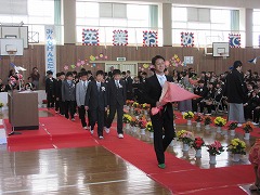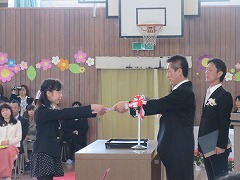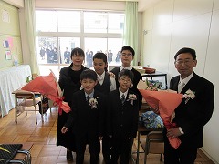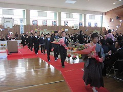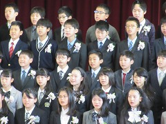 式では、起立や礼の動作、移動の様子、待つ姿勢、歌、どれをとってもいい姿です。証書授与では、校長先生から「おめでとう。」と声をかけられ、卒業証書を受け取りました。ちょっと笑顔になる子、軽く頭を下げる子、小さくお礼を言っていた子と、緊張の中にもふっと心が安まる瞬間です。その後、合唱、呼びかけと会は進んでいきましたが、終始これまでずっと見せた最高学年としての顔を、最後の最後まで見せ続けたすばらしい卒業式になりました。