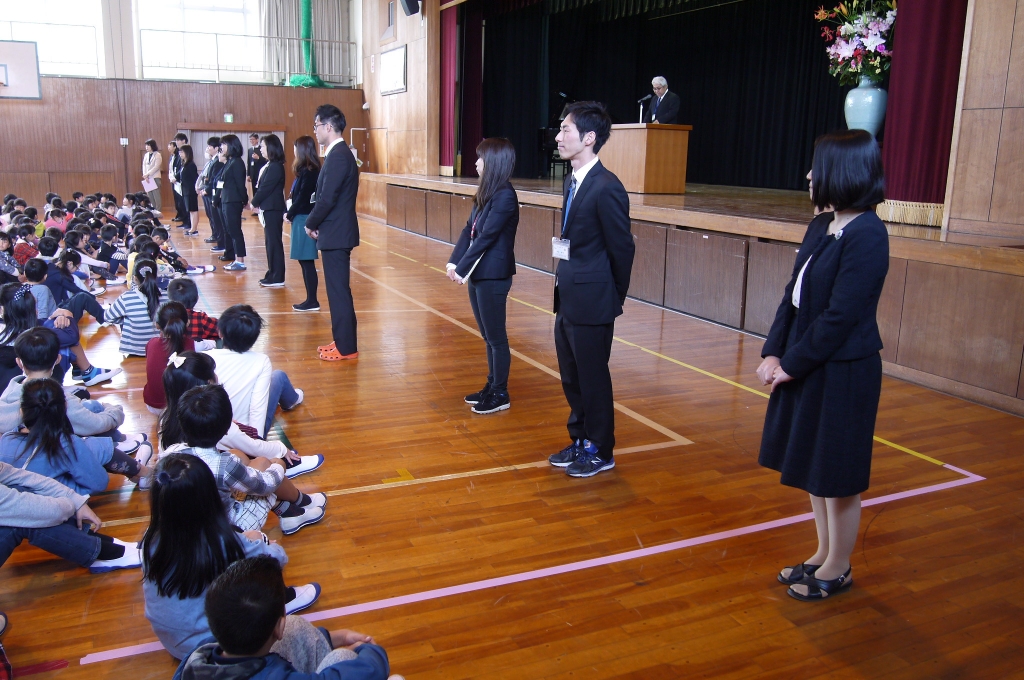 「着任式」では、新たに西小学校に赴任された先生6人の自己紹介が行われました。