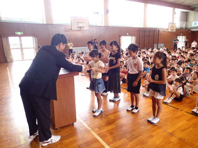 次に、2学期の学級委員の認証が行われました。先頭に立ち、学級を引っ張っていく学級委員の気持ちが、返事に表れていました。よろしくお願いします。