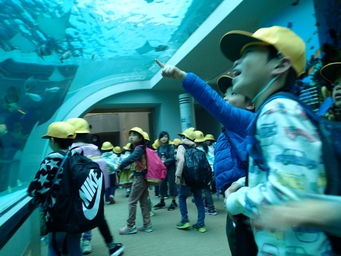 水族館では、イルカショーを見た後、館内を見学しました。
