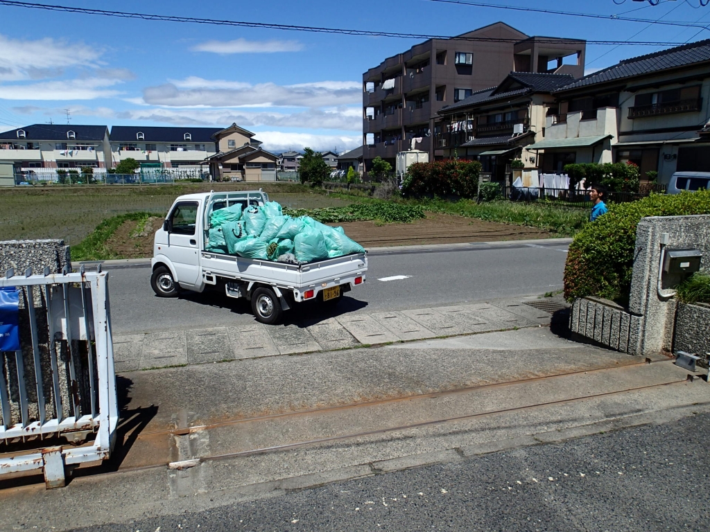 ごみ袋の回収では、地域の方がトラックで運んでくださいました。