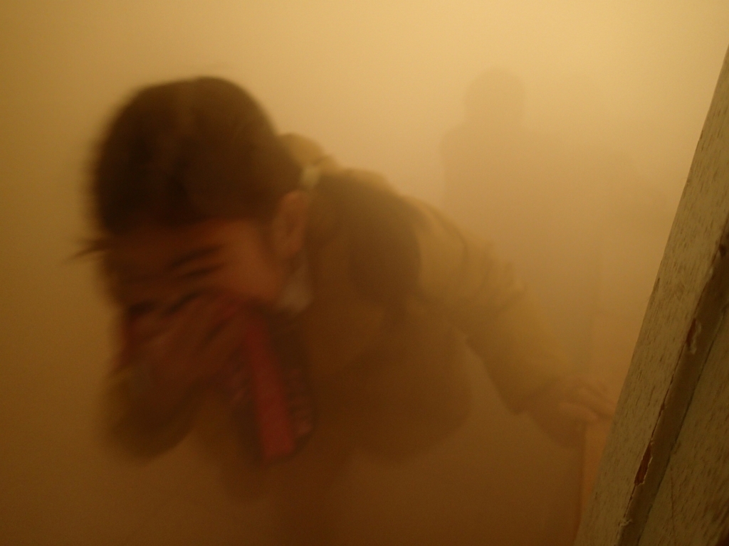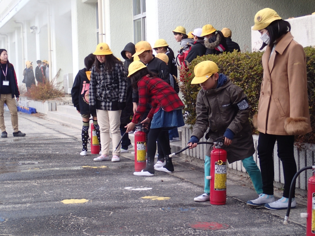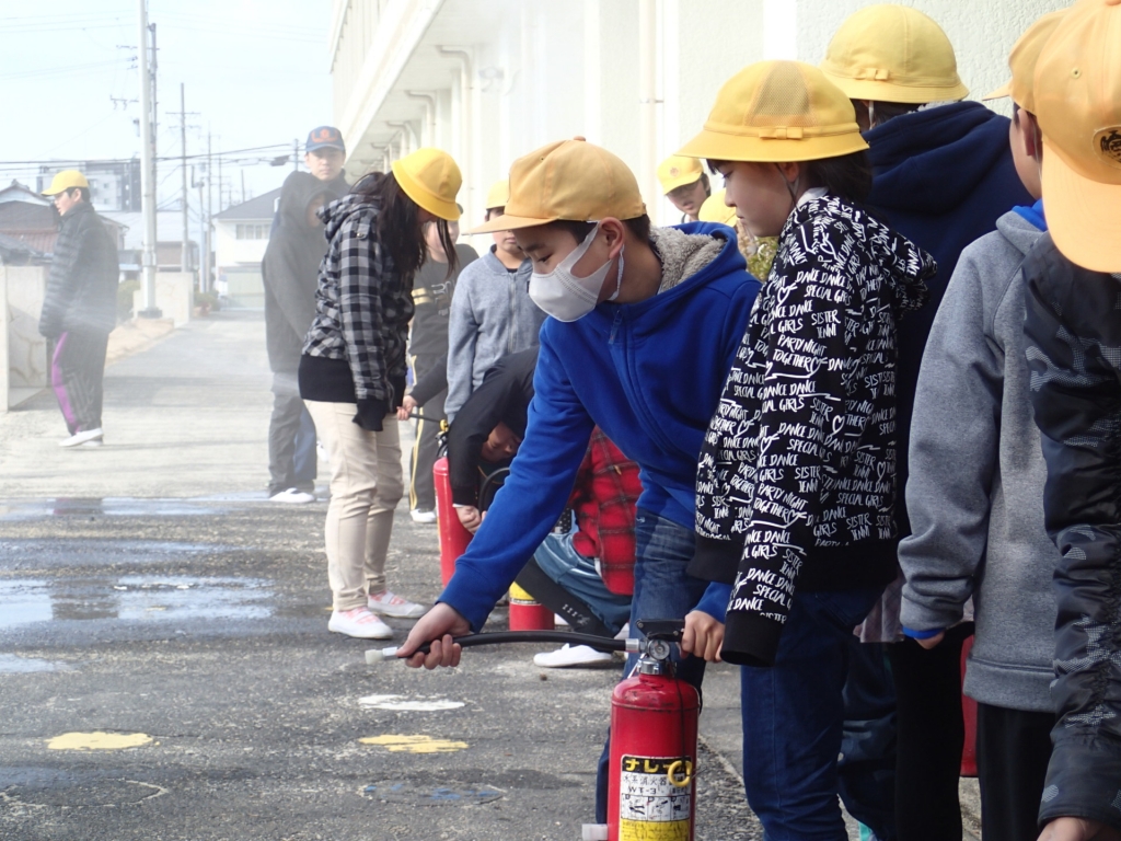 訓練後、1・2・3年生は『煙体験』、4年生は『救助袋体験』、5年生は『消火器体験』を行いました。