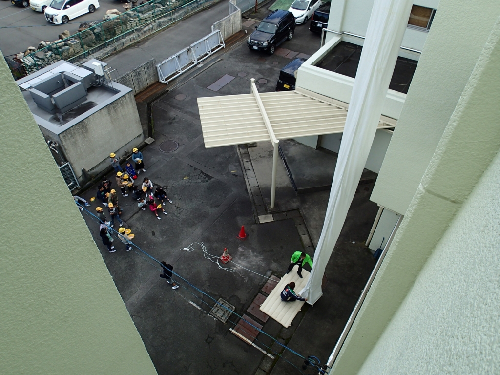 4階家庭科室から出火した想定で、避難訓練が行われました。