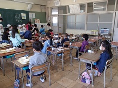 6年生の各教室では、ケーキのじゃんけんで盛り上がるところ、全員で輪になって食べるところ、思い思いに給食の時間を楽しみました。