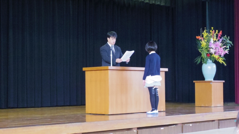 校長先生から、学年ごとに修了証をいただた後、皆、目を閉じて、1年間をふり返りました。4月には、新たなクラスで新たな出会いも待っています。友だちを大切にし、皆で高め合っていてth惜しいというお話がありました。