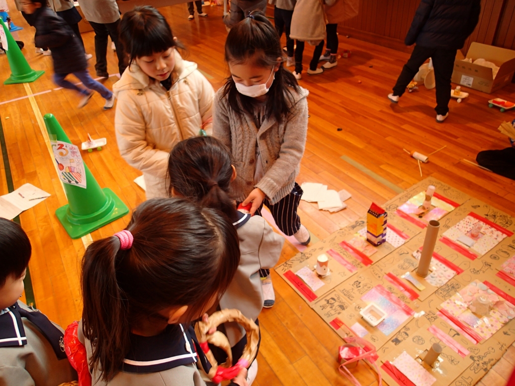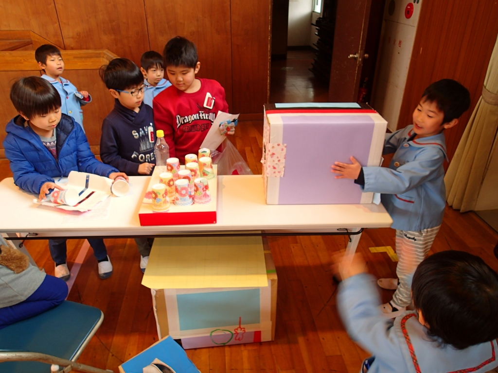 2月21日(水)2年生による「おもちゃランド」が、新居屋保育園とひかりこどもえんの子どもたちを招待して行われました。