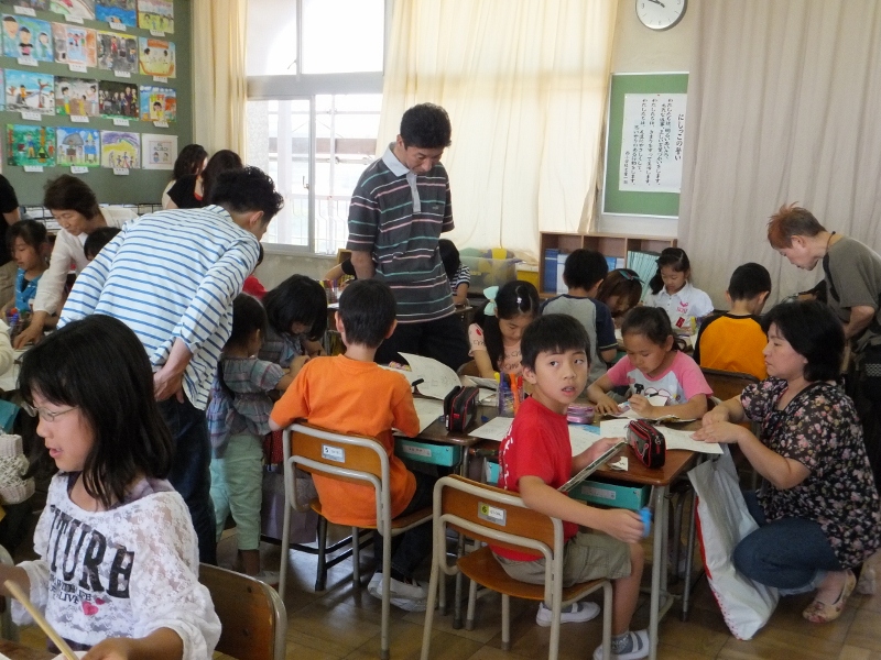 続いて、授業参観が2時間行われ、授業を参観したり、いっしょに工作に取り組んだりしてくださいました。教室には入れないくらいのたくさんの方が参観してくださり、大盛況の授業参観でした。