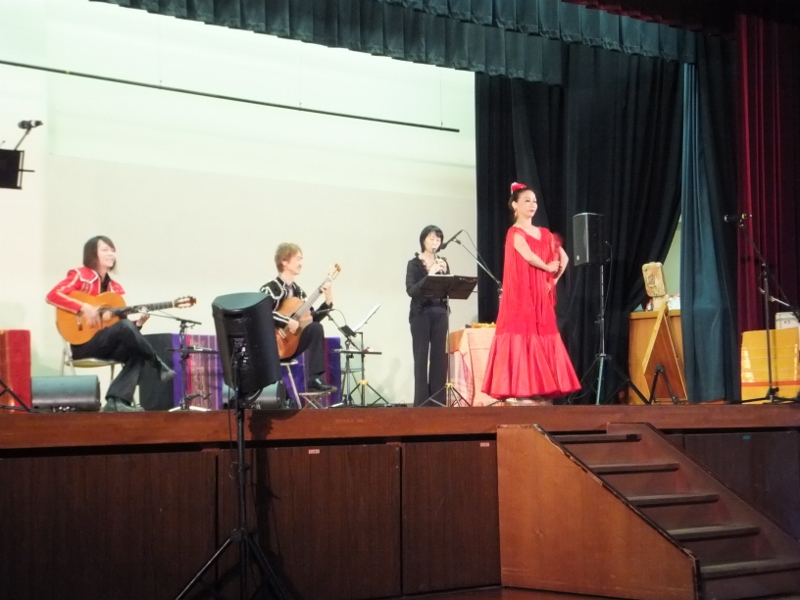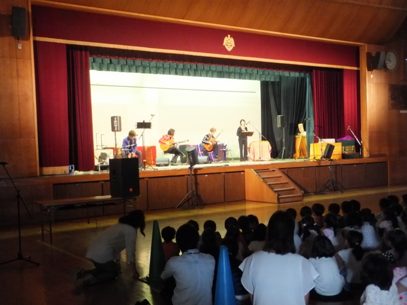 最後に、体育館で、親子で音楽鑑賞を楽しみました。国際交流に力を注いでいる今年は、音楽鑑賞も国際色豊かな「民族楽器・地球まるごと」 〔演奏:稲岡満男&音楽工房〕を用意しました。音楽を通して、「国と国の心のつながり」を変化に富んだ場面展開で伝えてくださいました。
