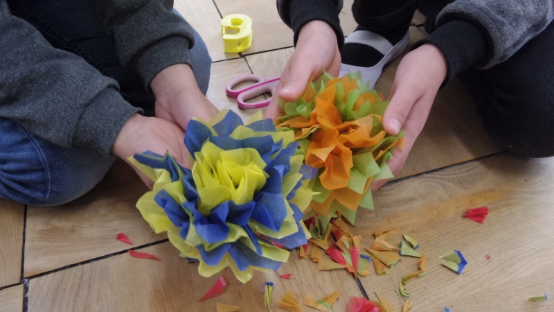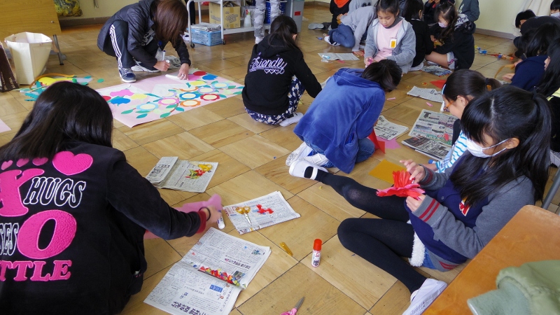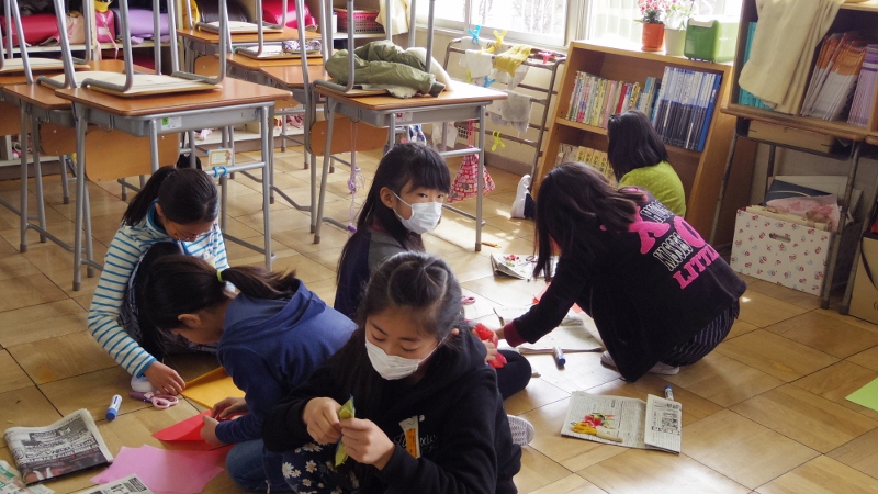 6年生からバトンを引き継ぐ5年生が、少しずつ最高学年としての責任の重さを実感する機会が増えてきました。この日は、卒業式の会場や6年生の教室、昇降口等を飾り付けるための準備をしてくれました。心を揉めて花をつくったり、色画用紙で飾りを作ったりと、皆で協力して準備をしてくれました。素晴らしい卒業式にしてくれるとともに、最高学年として、引き継いだバトンをさらに輝かせてくれるに違いありません。