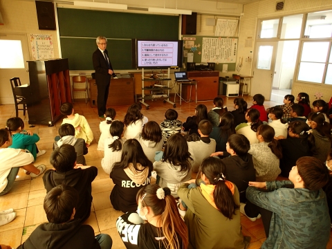 12月18日(水)午後、音楽室と家庭科室において、「薬物乱用防止教室」が行われました。津島警察署の方から、薬物の種類や恐ろしさについて、体験談や映像をもとに教えていただきました。