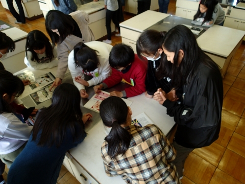 講義の後は、家庭科室に移動し、薬物の模型などの資料を見学しました。