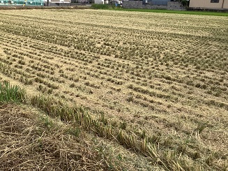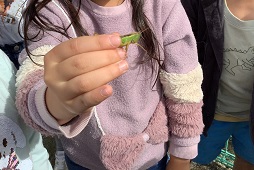 公園までの道中、「水が無くなっている!」「稲が刈られている」と田んぼの様子が変わっている事に気付いたり、公園内でバッタを見つけたりと学校外での秋を見つけることができました。