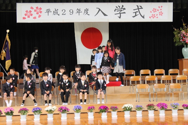 朝方の雨がやみ、晴天のもと平成29年度甚目寺西小学校入学式が行われました。