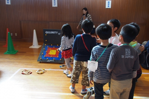 体育館では、輪投げやストラックアウト、ドッジボールなどで遊んだり、新聞紙を使った遊びを親子で行ったりして、楽しいひとときを過ごすことができました。