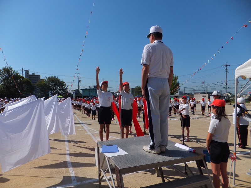 9月28日(土)、雲一つない秋晴れの中、今年の甚目寺西小学校運動会が開かれました。今年の児童会テーマ「にしっこ 笑顔で協力 最後まで!」を合い言葉に、子どもたちは、赤白それぞれに心を一つにして全力を尽くしました。