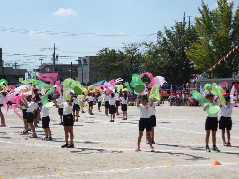 ソーラン!ソーラン!と元気なかけ声 1、2年生のがんばりに大きな拍手 赤組の勝利をねがって~!