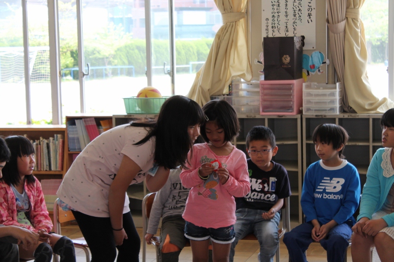 交流活動を通して、子どもたちに多くのことを学ばせようと取り組んでいる本校の目玉の一つである『わくわくタイム』(縦割り班活動)がスタートしました。リーダー・サブリーダーを中心に、高学年が準備を進め、この日を迎えました。それぞれの教室では、初めての『わくわくタイム』ということで、みんなで楽しむことができるゲームを楽しんでいました。その後は、『にこにこランチ』を、昨年までのお弁当から給食へとかえて、『わくわく班』でいっしょに食べました。まだまだ十分に打ち解け合ったとは言えないので、少し緊張した様子もうかがえましたが、これから、こうした活動を積み重ねていく中で、笑顔がいっぱいになってくると思います。
