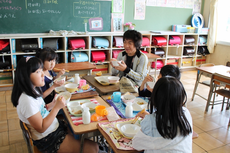 6年生の各教室では、ケーキのじゃんけんで盛り上がるところ、全員で輪になって食べるところ、思い思いに給食の時間を楽しみました。