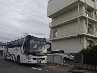 見送りの先生たちに笑顔で手を振って、バスに乗りこみました。