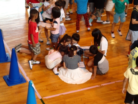 全校児童が体育館に集まり、児童会役員が考えた「まちがい探し」や「もしも仲間作りゲーム」をして楽しみました。様々な学年とふれ合うことができ、体育館が和やかな雰囲気に包まれました。