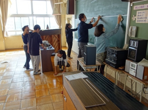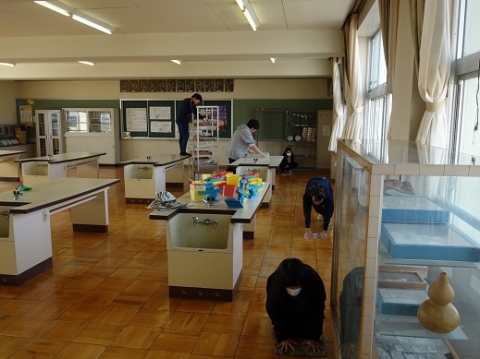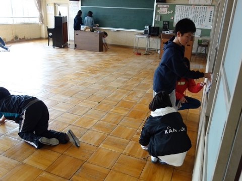 6年生は、教室にある机や戸棚などを運び出し、普段の掃除では取れないゴミを集めたり、床を水拭きしたりしました。