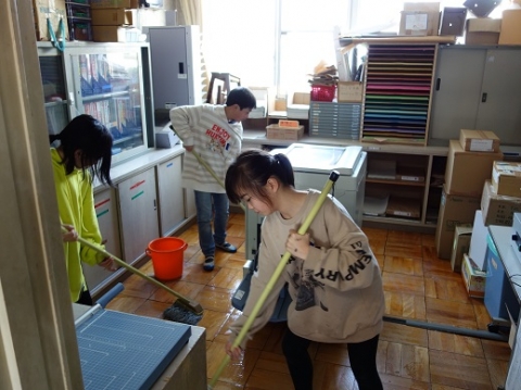 6年生が、卒業を前に学校のためにできることに取り組みました。特別教室の床のワックスがけ、運動場の側溝の整備など手際よく作業していました。とてもきれいな仕上がりで、6年生がとてもいい表情をしていました。お世話になった学校に恩返しができましたね!ありがとう!!