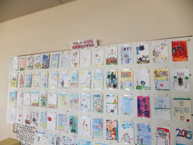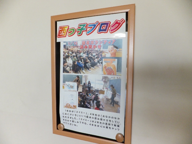 東西の昇降口(児童の出入口)に『西小ブログ掲示板』が設置されました。他の学年の子たちが、今、どんな活動をしているのかを知ってもらうためのもので、随時更新(張り替え)をしていきます。子どもたちは言うにおよばす、保護者の皆様も、来校された折には、ぜひご覧下さい。また、交流を続けているアメリカ・マロニー小学校の子どもたちから年賀状が届きました。西昇降口に掲示してありますので、併せてご覧いただけたらと思います。