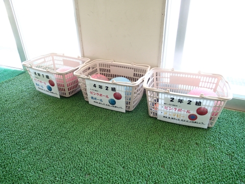 遊びで使ったボールは、教職員が消毒をします。