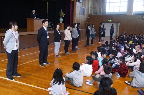 4月8日(火)朝、体育館で、着任式・始業式・対面式が行われました。