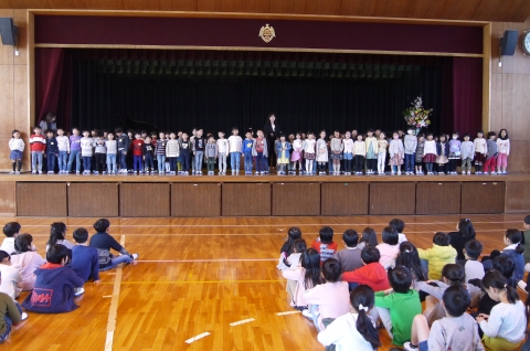 修了式で校歌斉唱♪