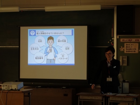 NTTの方を講師にお招きし、アニメや再現ドラマをみながら、正しい使い方について、注意点について学習することができました。
