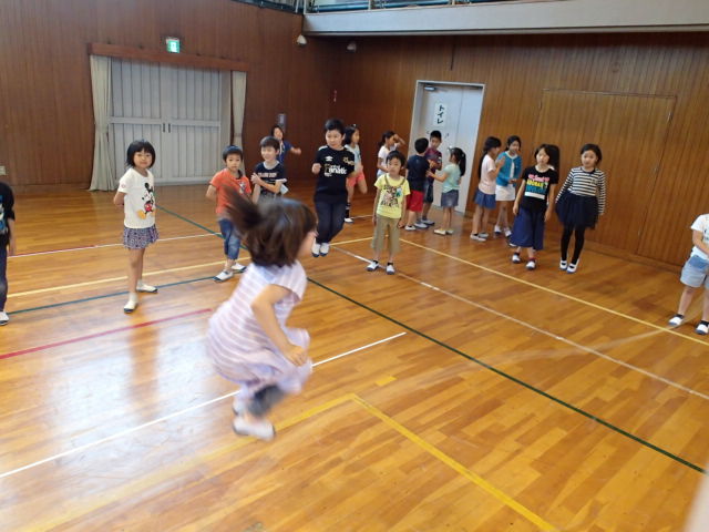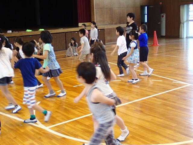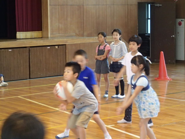 ドッジボールでは、積極的にボールをとったり、素早く逃げたり元気いっぱい体を動かすことができました。中には、とったボールを3年生に譲る子もいました。