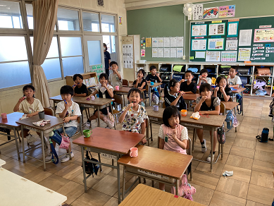 時間になると、イスに座り、歯みがき体操の動画を見ながら、歯みがきを行いました。動画が楽しく、映像が面白かったようで、子どもたちに好評でした!