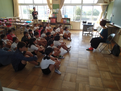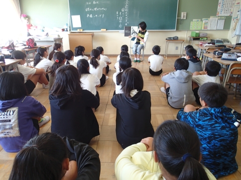 10月10日(木)朝、図書ボランティアさんによる読み聞かせが行われました。