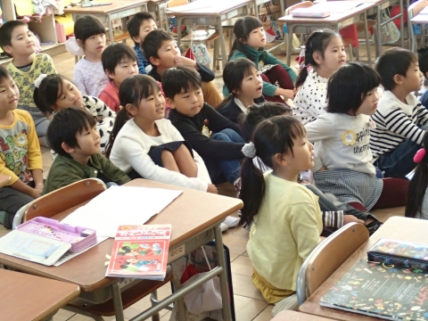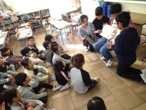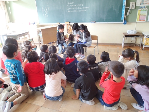 グループに分かれた図書委員が学級を訪問し、準備した絵本を読みました。