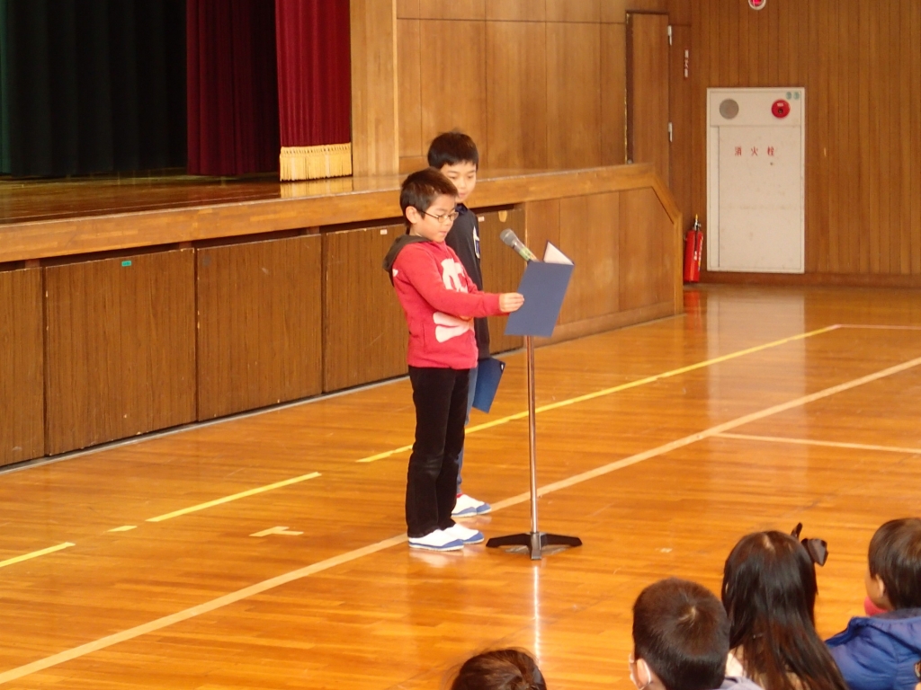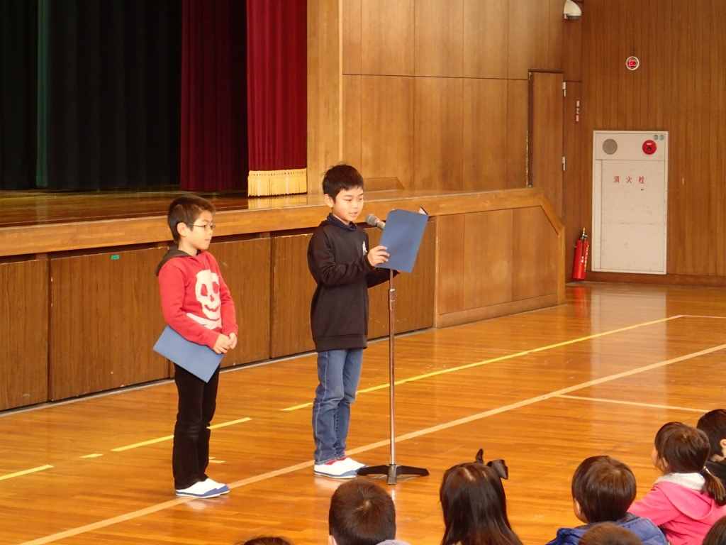 続いて、1年生と5年生の代表が、3学期の決意を発表しました。
