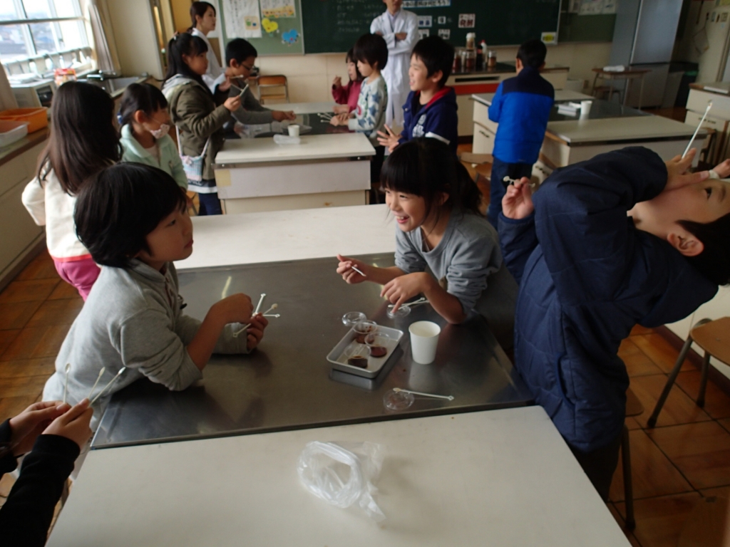 原材料を手に触れたり、製造過程で原材料が変化していく様子を確かめたりしました。