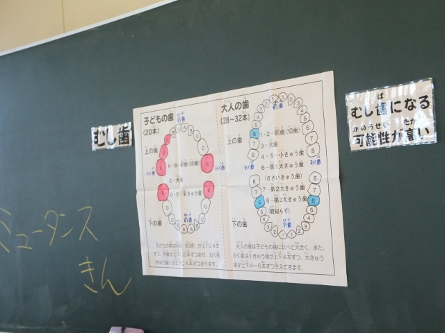 学校歯科医さんと歯科衛生士さんをお招きしての歯科学習、この日は3年生の子たちが『染め出し体験』をしながら、日頃の歯磨きの大切さについて学びました。きれいに磨いていた子もいれば、磨き残しが多かった子も・・・・。永久歯は一生の“伴侶”でもあります。しっかりと歯を磨き、大切にしていってほしいと思います。