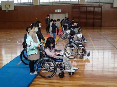 6年生は「点字」と「疑似老人体験」、5年生は「車いす体験」、4年生は「点字」について学習しました。
