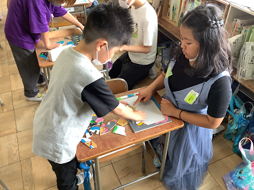 今回は、5年生が作ったパズルを、2年生が教えてもらいながら遊ぶというものでした。