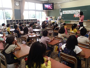 図書ボランティアの先生方が教室に入り、絵本を取り出すと、子どもたちはうれしそうな顔になります。今日は、図書ボランティア初めての先生も参加をしてくださいました。「何かボランティアをしてみたくて、勇気をを出して申し込んでみました」と言っていただいた言葉、とてもうれしく思いました。