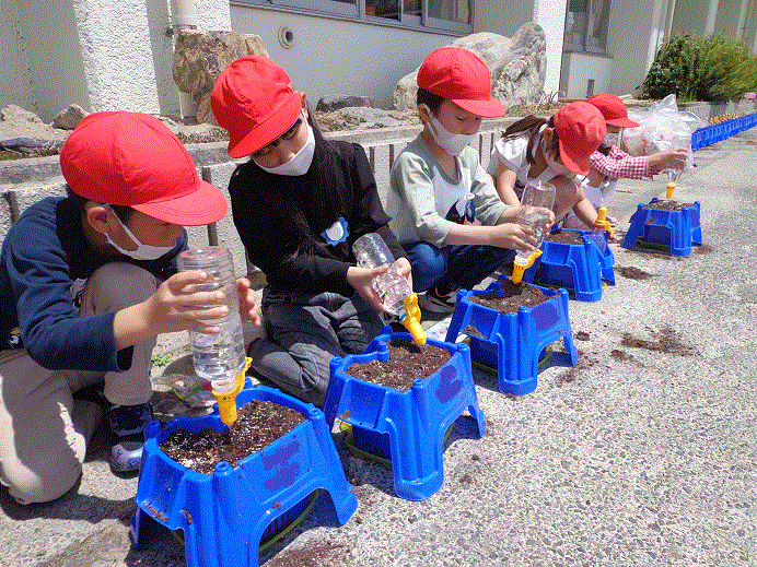 【1年生】あさがおの種を植えました。