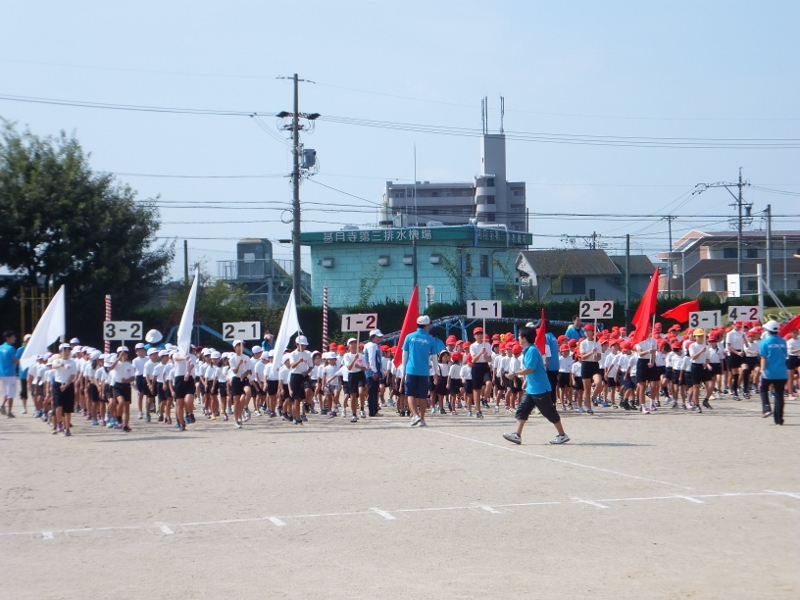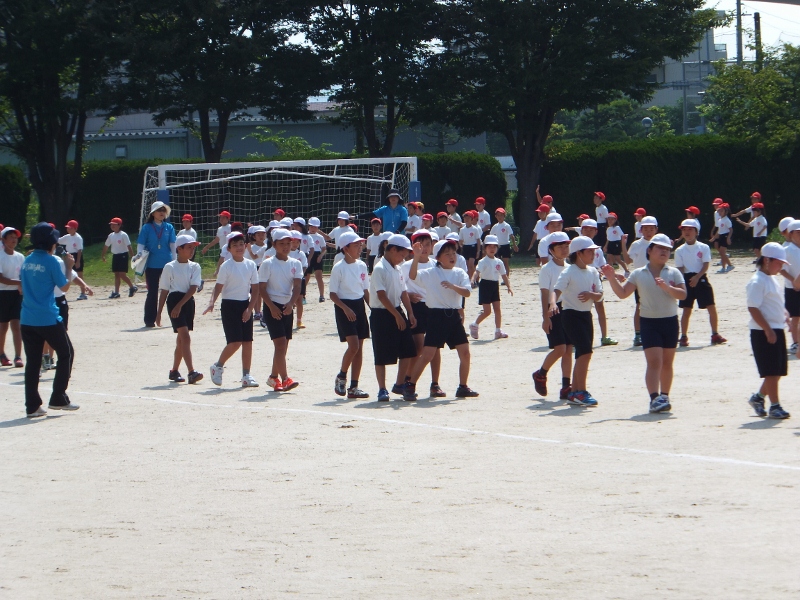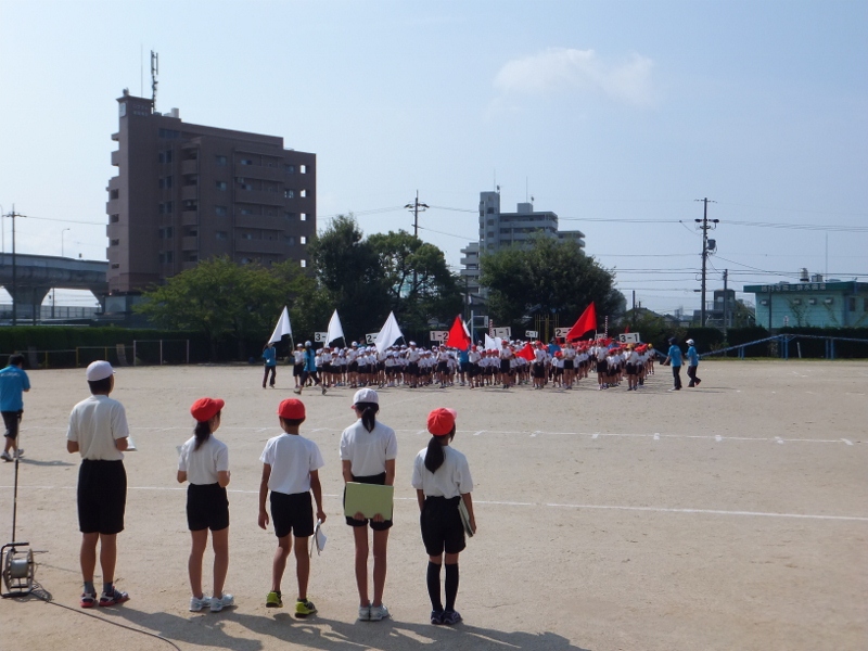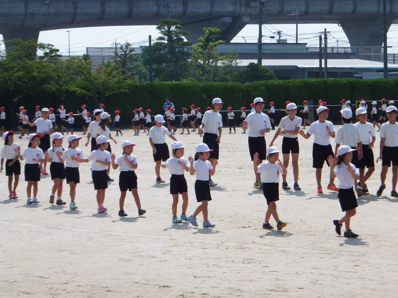 運動会に向けての練習が本格的に始まりました。この日は、全校練習として、開会式の入場行進の練習をしました。その後、甚目寺小唄の練習もしました。例年よりは気温は低かったのですが、皆、額に汗をかきながら、よくがんばっていました。