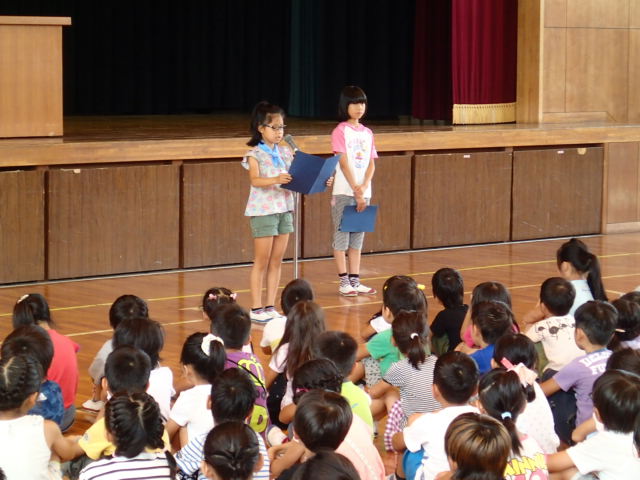 児童代表の二人は、1学期をふり返りながら、2学期にがんばることを発表しました。